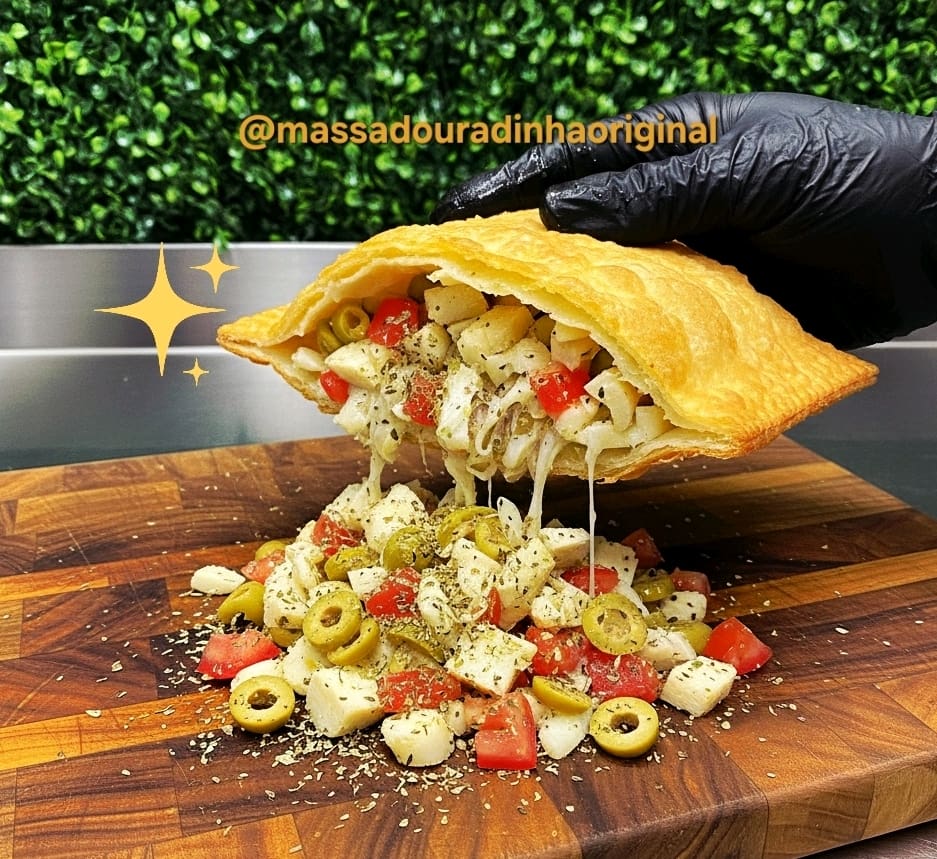 Massa colonial extra grossa e bastante queijo muçarela.*Foto real de nosso produto, mas meramente ilustrativa. Seu pedido acompanha somente queijo na massa.
