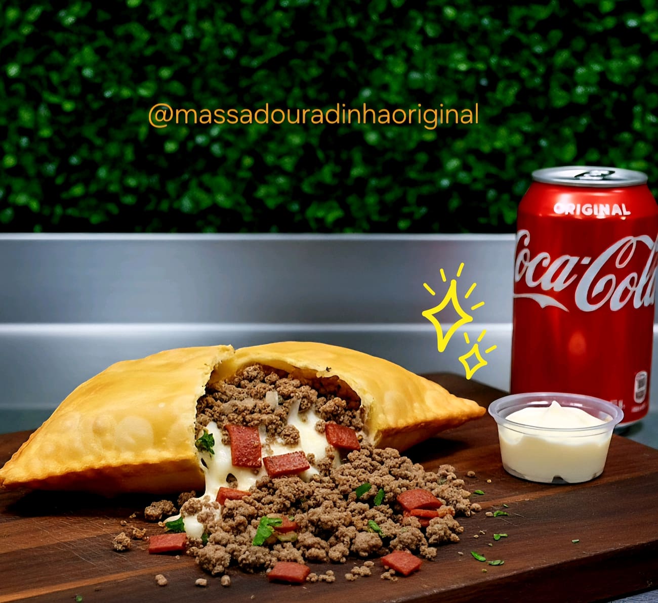 Massa colonial extra grossa com 100g de carne moída tradicional, sem molho, bem temperadinha com muuuito queijo, iscas de calabresa passadas na chapa e soltinha que nem arroz.