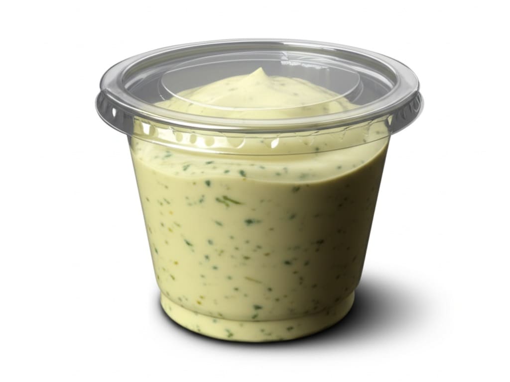 Um delicioso potinho de maionese verde e bem temperada de 30ml.