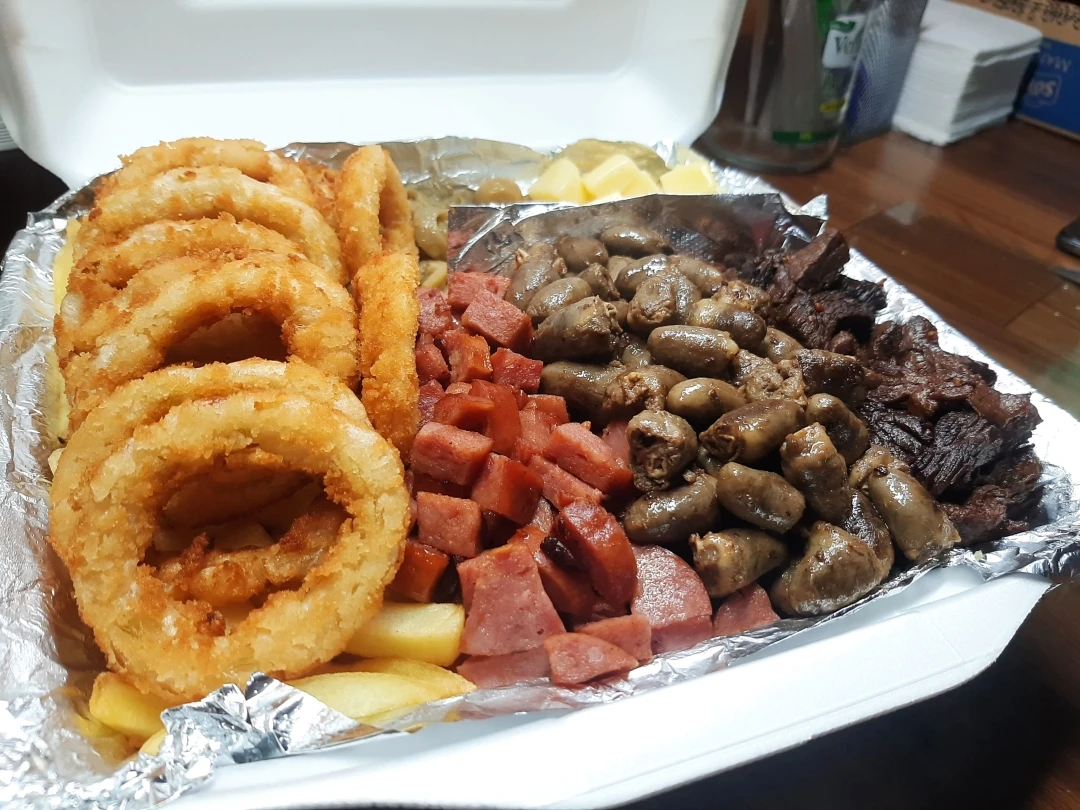 Acompanha: Batata frita, iscas de carne, calabresa, coraçãozinho, frango, polenta frita e anéis de cebola.