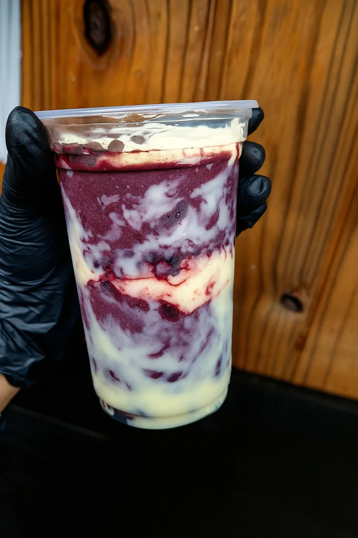 Acompanha até 4 complementos gratuitos, sendo possível turbinar ele! ℹ️ Em opção de 1 litro de açaí, vai em 2 copos de 500ml. Fazemos isso pra manter a qualidade no transporte, usando porta copos e presilhas pra manter todos de pé. ATENÇÃO: Não enviamos complementos separados dos copos. NÃO vamos atender pedidos ou observações.