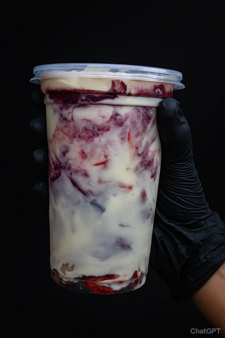 ℹ️ Em opção de 1 litro de açaí, vai em 2 copos de 500ml. Fazemos isso pra manter a qualidade no transporte, usando porta copos e presilhas pra manter todos de pé.